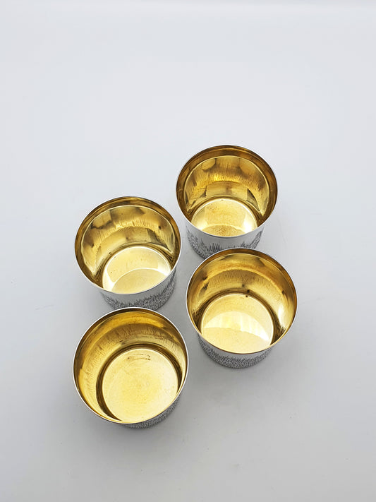 Stunning Set of 4 Silver Plate Tumblers with Gilt Interiors – circa 1970