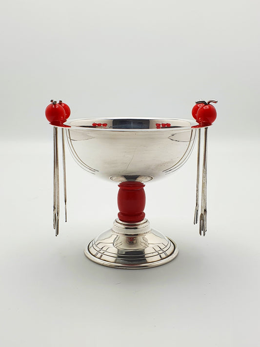Charming Mid-Century Silver-Plated Cocktail Pick Set with Cherry Red Accents – circa 1950