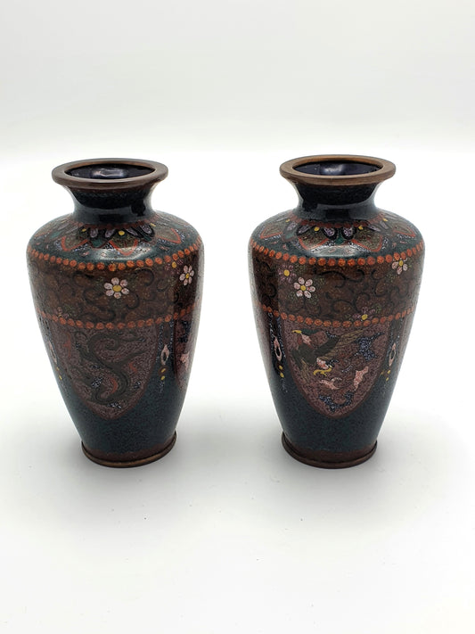 Nice Pair of Small Antique Japanese Cloisonné Vases - circa 1930