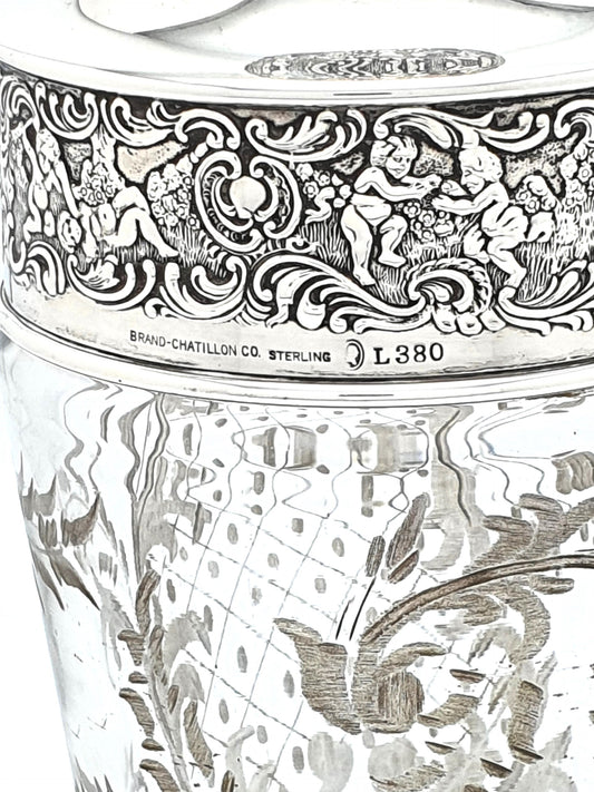 Stunning Large Antique American Sterling Silver & Glass Cocktail Shaker - circa 1900
