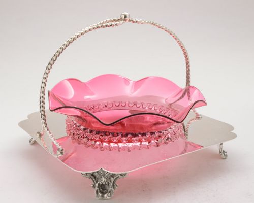 Stunning Cranberry Glass Dish in Silver Plated Stand - circa 1905