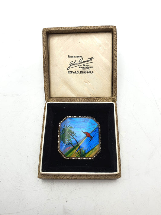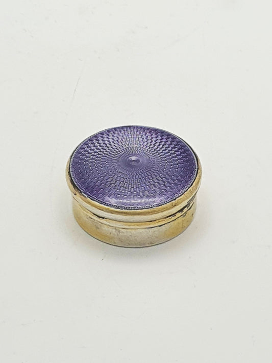 Antique Sterling Silver & Purple Guilloché Enamel Pill Box - 1926