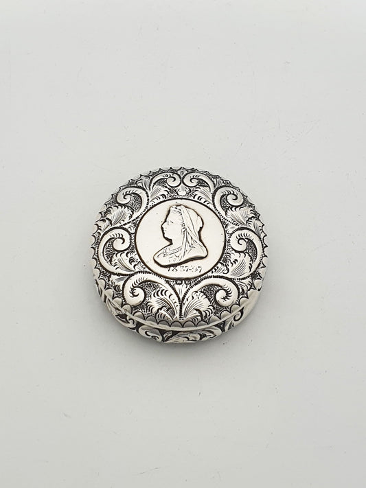 Lovely Antique Queen Victoria Diamond Jubilee Silver & Gilt Snuff Box - 1897