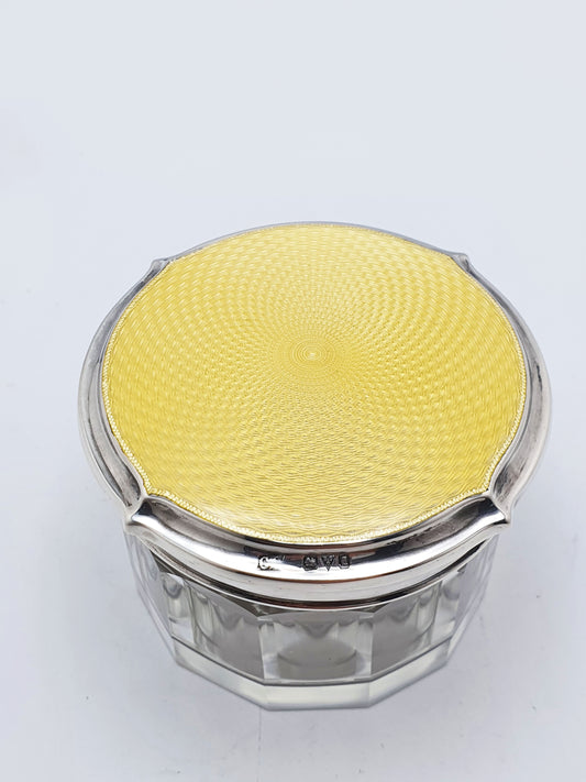 Gorgeous Art Deco Silver & Guilloche Enamel Lidded Glass Jar - 1926