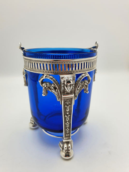 Striking Antique Silver-Plated Sugar Bowl with Cobalt Blue Glass Liner – circa 1890