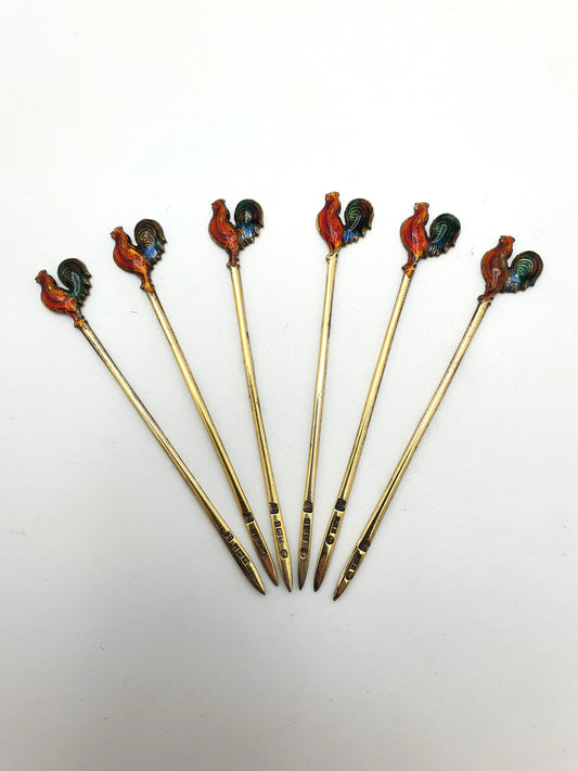 Beautiful Set of Silver and Enamelled Cocktail Sticks - 1951