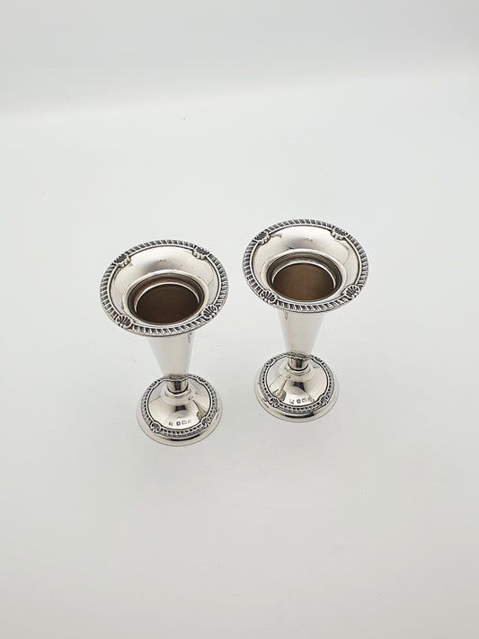 Lovely Pair of Antique Georgian Revival Sterling Silver Trumpet Vases - 1915