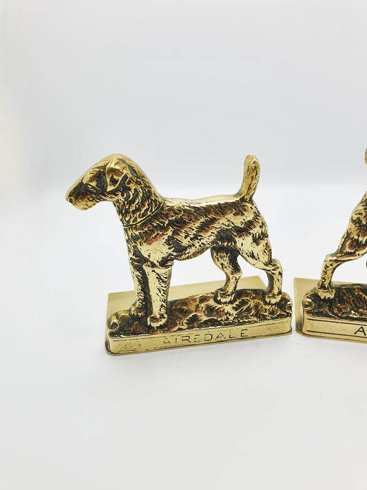 Pair of Vintage Solid Brass Airedale Terrier Dog Bookends – circa 1930