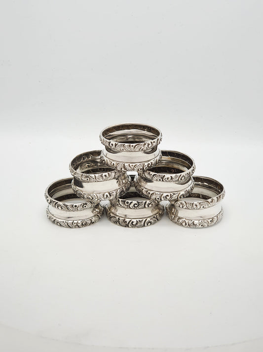 Lovely Set of 6 Ornate Antique Sterling Silver Napkin Rings – 1908
