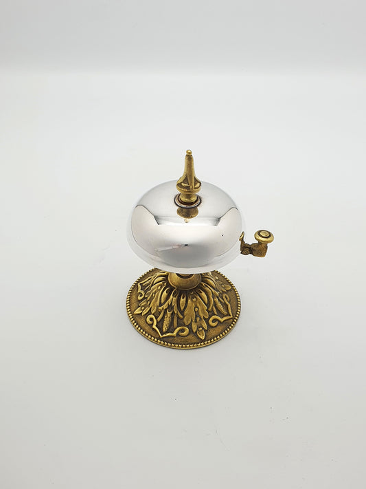 Victorian-Style Silver-Plated Desk Bell with Ornate Brass Base – circa 1920