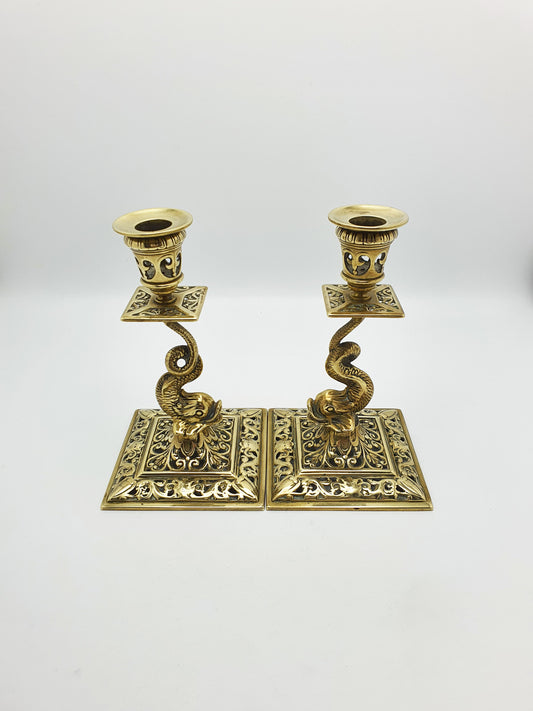 Nice Pair of Victorian Brass Dolphin Candlesticks - 1890
