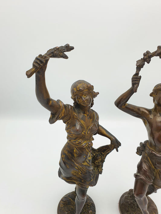 Lovely Pair of Antique French Bronze Harvest Dancers Figurines - circa 1900