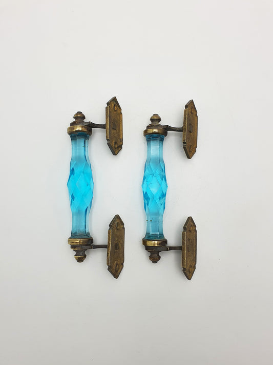 Stunning Pair of Antique Blue Glass Door Handles with Ornate Brass Mounts – circa 1890