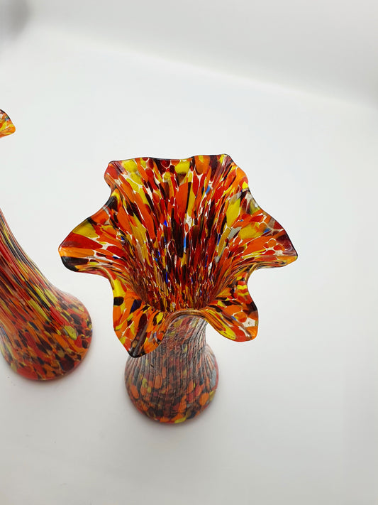 Pair of Large Hand-Blown Art Glass Vases with Vibrant Multicolour Millefiori Design – circa 1930