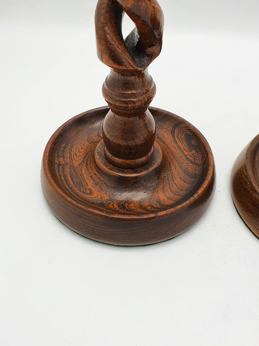 Nice Pair of Antique Open Barley Twist Oak Candlesticks – circa 1920