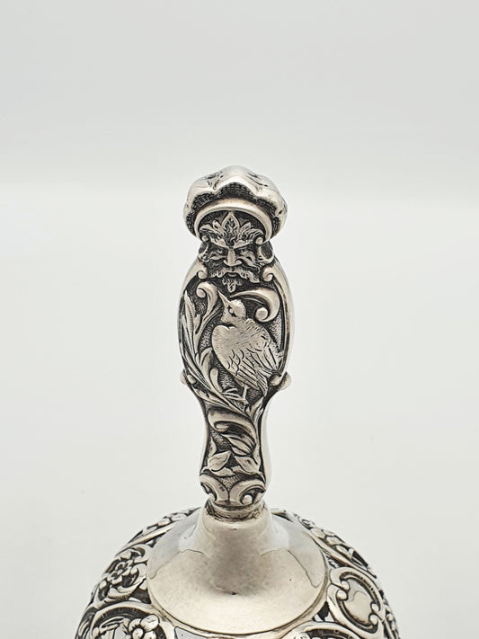 Rare Sterling Silver and Glass Table Bell with Ornate Figural Handle - 1896