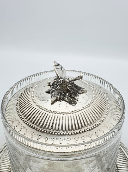 Antique Victorian Cut Glass and Silver-Plated Biscuit Box/Cookie Jar – circa 1880
