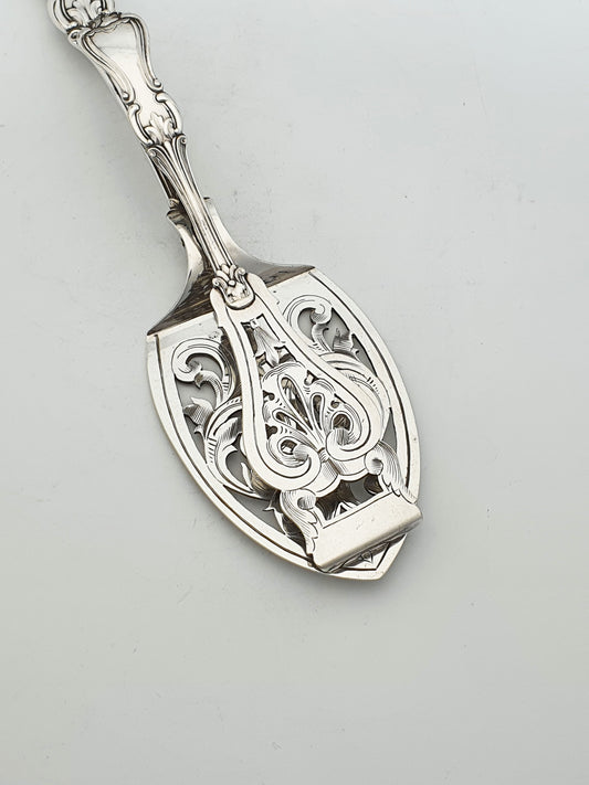Antique Victorian Silver Plated Serving Tongs with Pierced Rococo Design – circa 1890