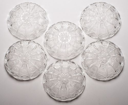 Gorgeous Set of 6 Cobweb Cut Glass Dishes - circa 1930