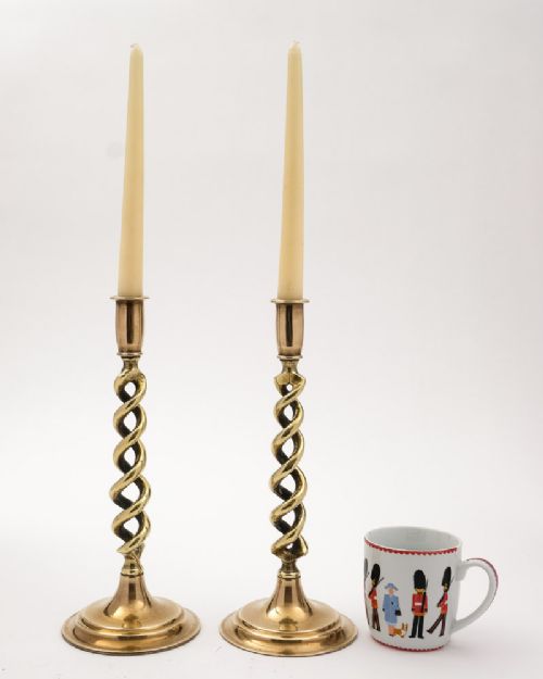 Elegant Pair of English Brass Candlesticks - circa 1920