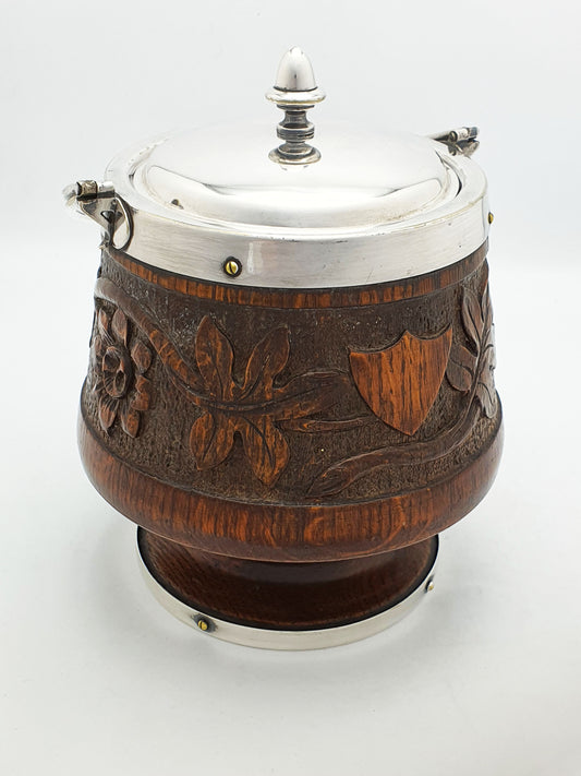 Fabulous antique oak cookie/ biscuit barrel - circa 1890