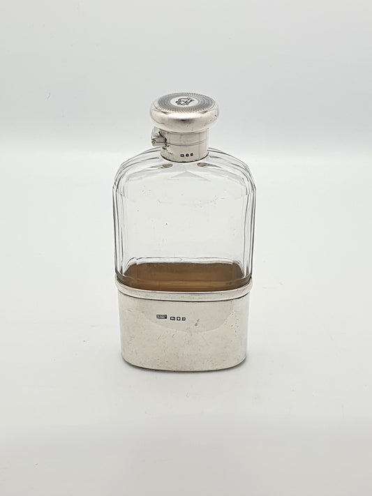 Superb Antique Silver and Cut-Glass Hip Flask – London, 1919