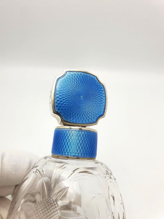 Lovely Silver and Guilloche Enamel Topped Scent Bottle - 1944