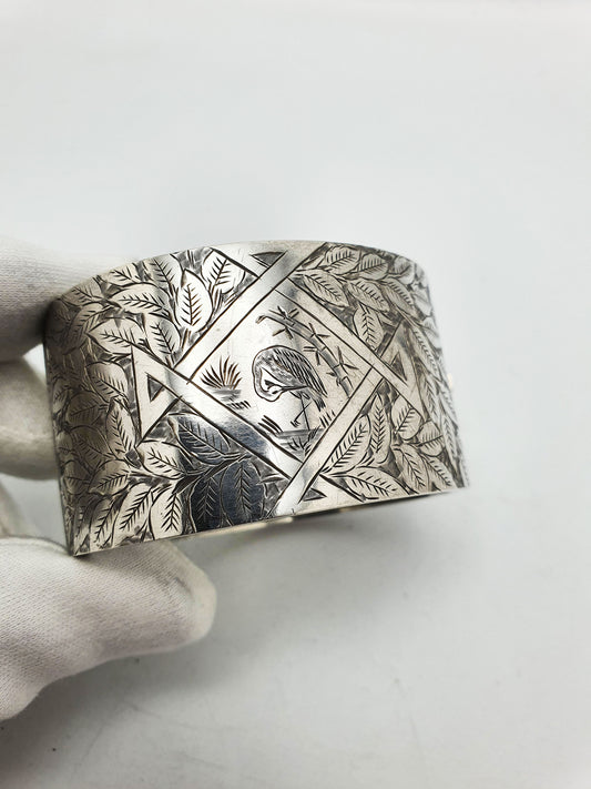 Nice Victorian Engraved Sterling Silver Bangle Bracelet - 1882