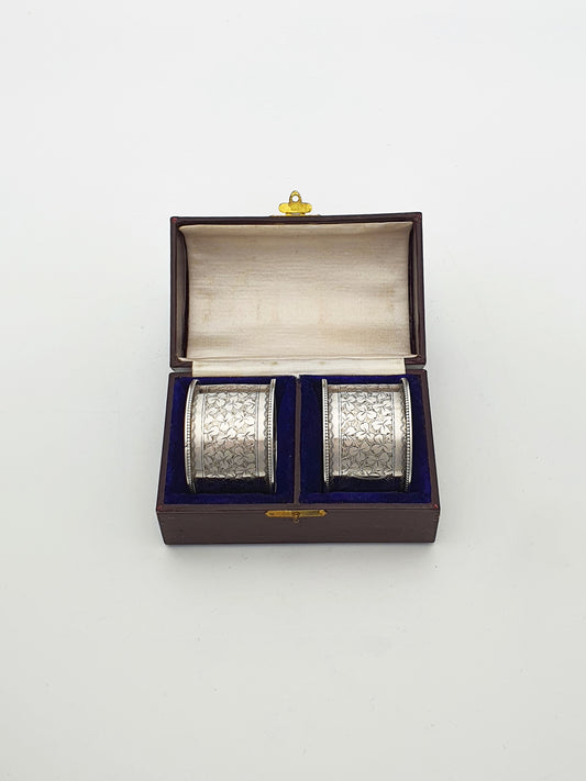 Pair of Antique Victorian Sterling Silver Napkin Rings in Fitted Case - 1890