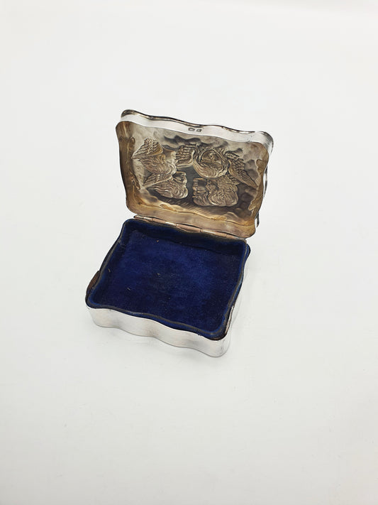 Gorgeous Antique Edwardian Silver Cherub Trinket Box with Velvet Interior - 1907