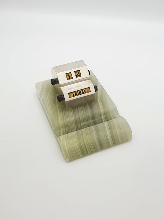 Nice Art Deco Sterling Silver Perpetual Desk Calendar with Green Onyx Base - 1948