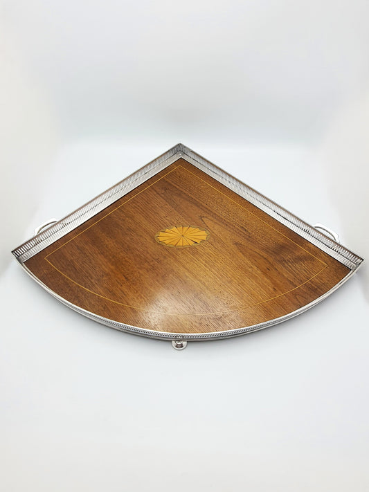 Exceptional Antique Edwardian Silver-Plated & Inlaid Mahogany Drinks Tray – circa 1905