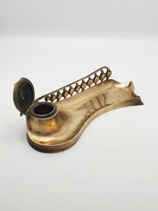Gorgeous Antique Art Nouveau Bronze Inkwell with Pen Rest - circa 1890