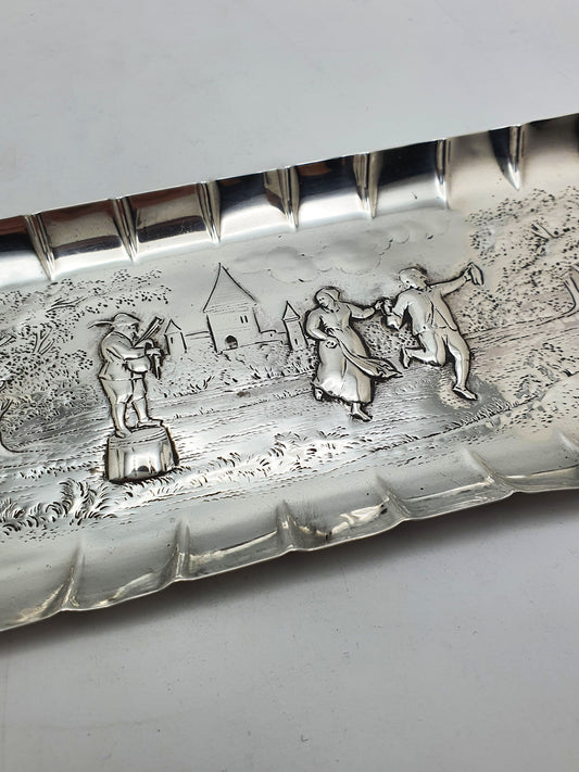 Nice Sterling Silver Embossed Tray – Dancing Couple & Musician - 1883