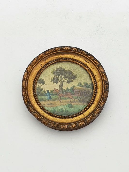 Miniature Hand-Painted Victorian Pastoral Scene in Gilt Gesso Frame – circa 1850