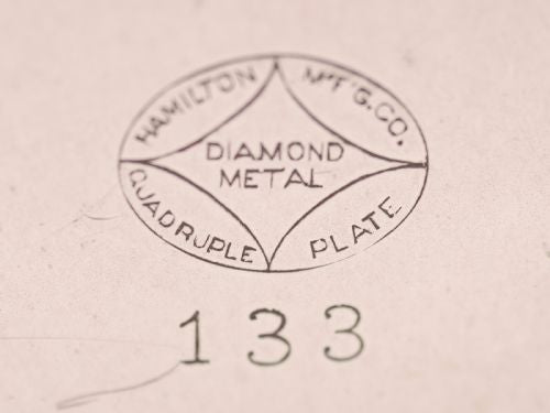 An unusual American silver plated novelty cigar holder in the shape of a champagne bottle with bright cut engraved flower decoration and the word Cigars engraved to front. The back is engraved with the name William Everly December 25th 01. Circa 1900 FREE worldwide delivery. Measurements: Height: 10 (approx 25cm) Diameter across base: 2 1/2 (approx 6.25cm) Weight: 317g In good condition - some wear to the silver plate and a few minor dinks.