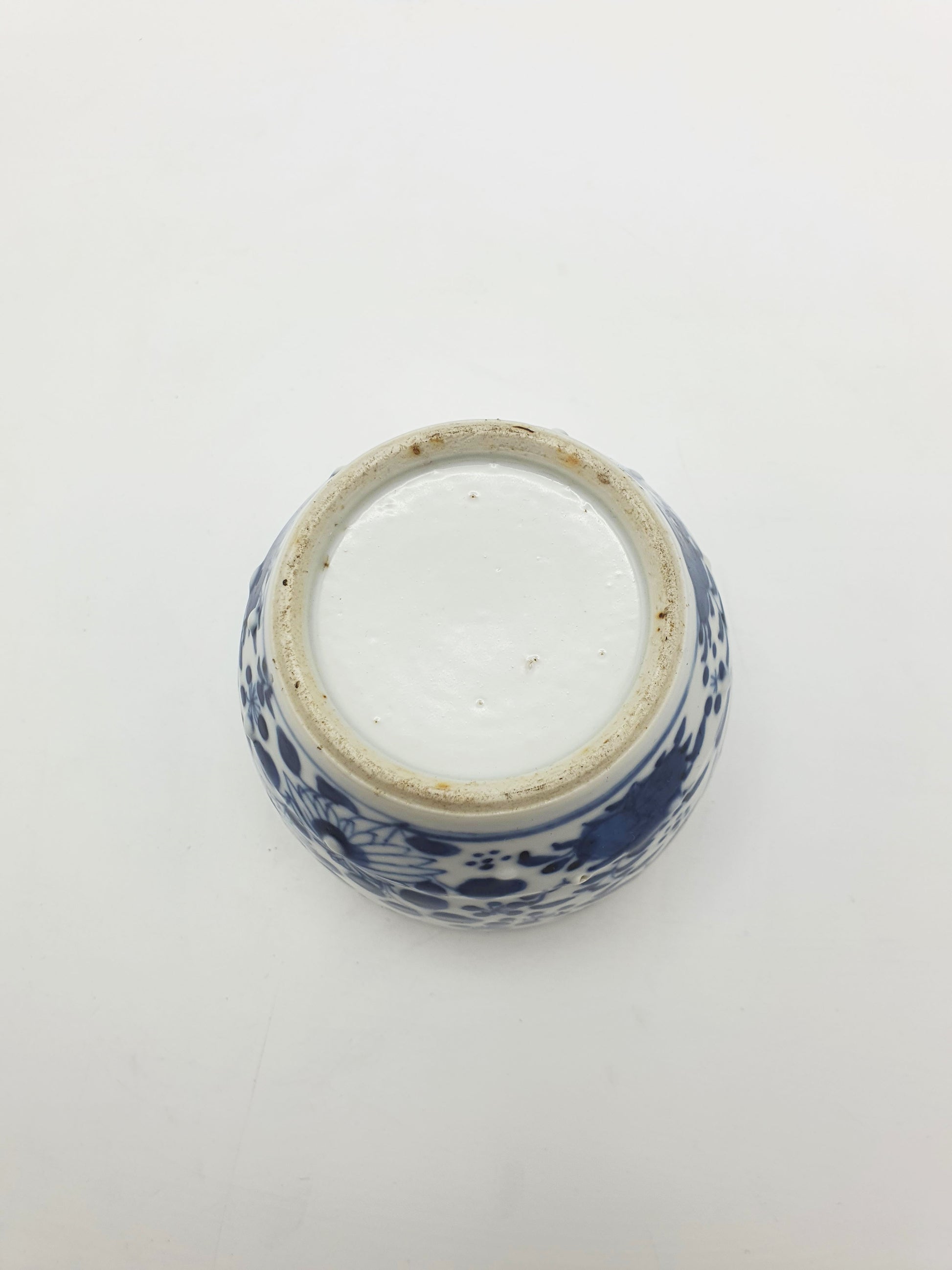 This jar features small raised white knobs on its surface - an intentional decorative technique used to add texture and dimension to the design. These applied slip dots were carefully hand-formed before glazing and are often found on traditional blue and white wares. Far from being flaws, these details reflect the artistry and symbolic richness of Qing-era porcelain decoration.