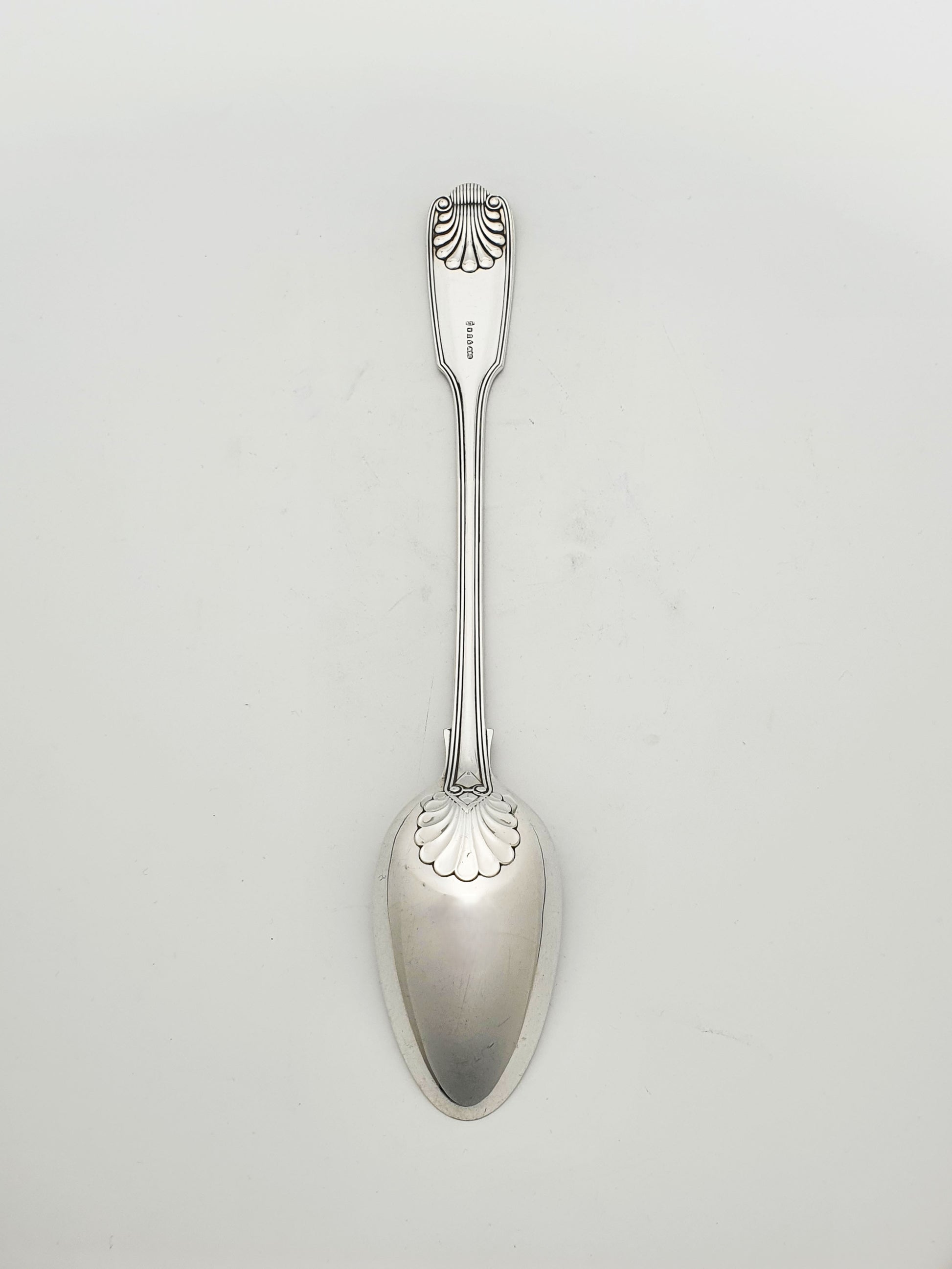 Antique Victorian Silver-Plated Basting Spoon beautifully crafted in the elegant Fiddle, Thread & Shell pattern. This classic design, popular from the Georgian period through the early 20th century, combines restrained lines with decorative shell and thread detailing to the terminal.