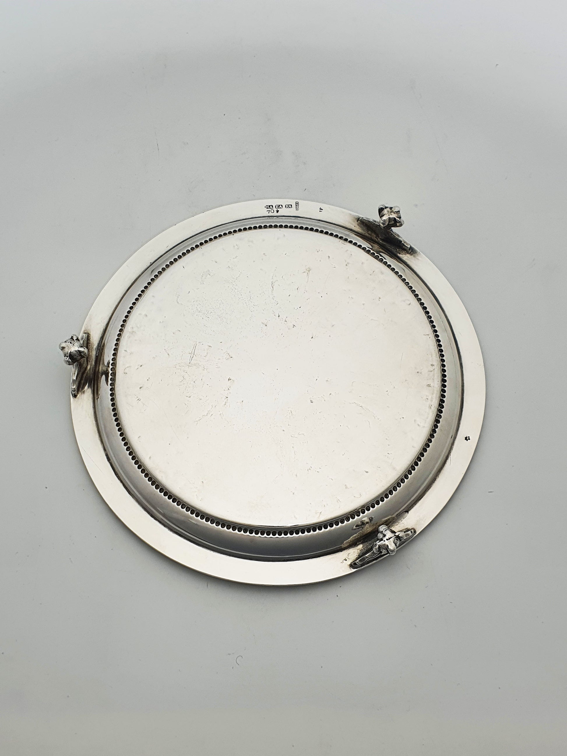 In good condition – The tray presents with an attractive overall sheen, with light surface marks consistent with age and gentle use. The engraved decoration remains crisp and clear, with good contrast across the design.