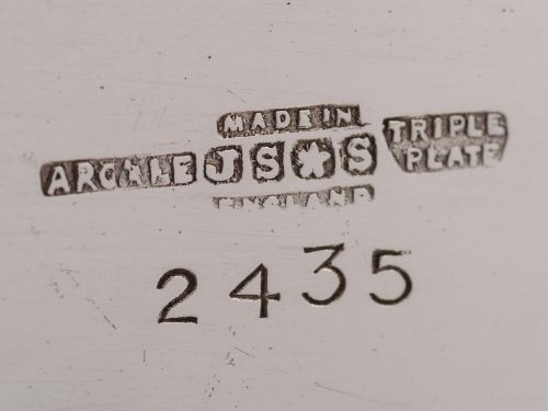 A nice English Art Deco silver plated oblong tray with scroll handles which have white bakelite ends. Lovely embossed Celtic design to edges. Circa 1930. Worldwide first class tracked and signed for delivery is included in the price. Measurements: Height: 1 (approx 2.5cm) Length: 14 1/2 (approx 36.75cm) Width: 4 1/2 (approx 11.5cm) Weight: 450g In good condition - any dark areas are shadows from the photography there is no damage to the silver plate.