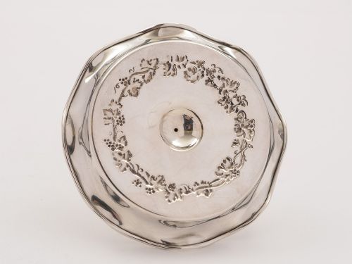 A lovely English Edwardian silver ring tree with grape and vine decoration to base and realistic tree trunk to hang rings on. Hallmarked Birmingham 1908 and marked S B for Synyer & Beddoes - Harry Synyer & Joseph Beddoes Birmingham. Worldwide first class tracked and signed for delivery is included in the price. Measurements: Height: 3 1/4 (approx 8cm) Diameter of base: 4 (approx 10cm) Weight: 32g Wonderful addition to the dressing table - would make a great present! In good condition - any dark areas are shadows from photography.