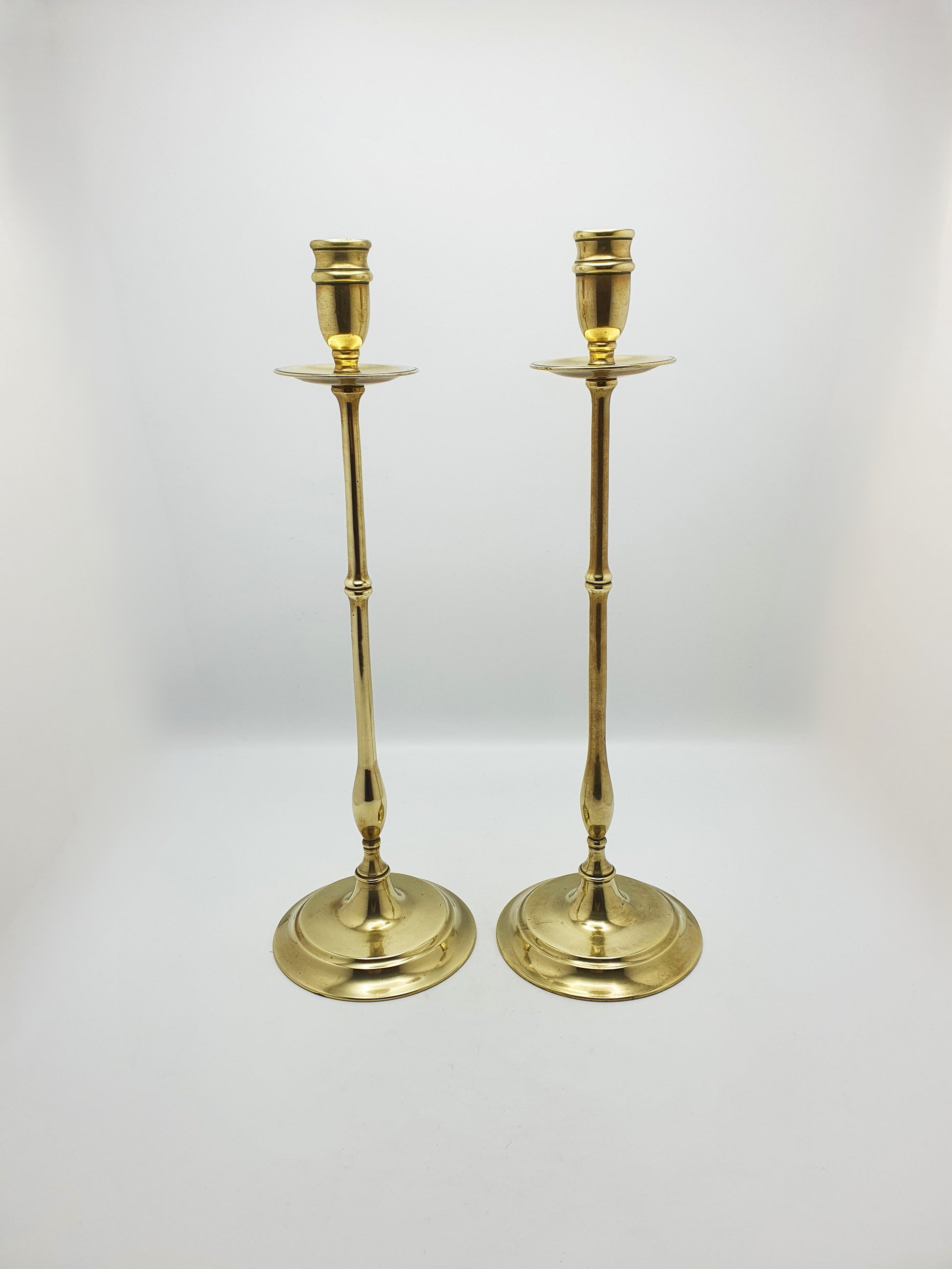 Elegant Pair of Antique Edwardian Tall Brass Candlesticks – circa 1905