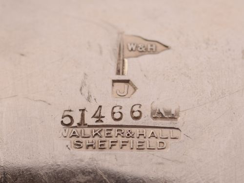 A fabulous English Art Nouveau silver plated serving dish with three compartments central decorative carrying handle and sits on 4 bun feet. Made by the renowned maker Walker & Hall circa 1900. FREE worldwide delivery. Measurements: Height (to handle): 8 ½” (approx. 21.25cm) Length: 13” (approx. 32.5cm) Width: 9” (approx. 22.5cm) Total weight: 632g In good condition -any dark areas are shadows from the photography there is no damage to the silver plate.