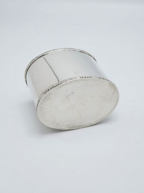 A Good Silver Oval Shaped Tea Caddy with pull off lid. Marked EJG for maker Ellis & Co and hallmarked London 1924.