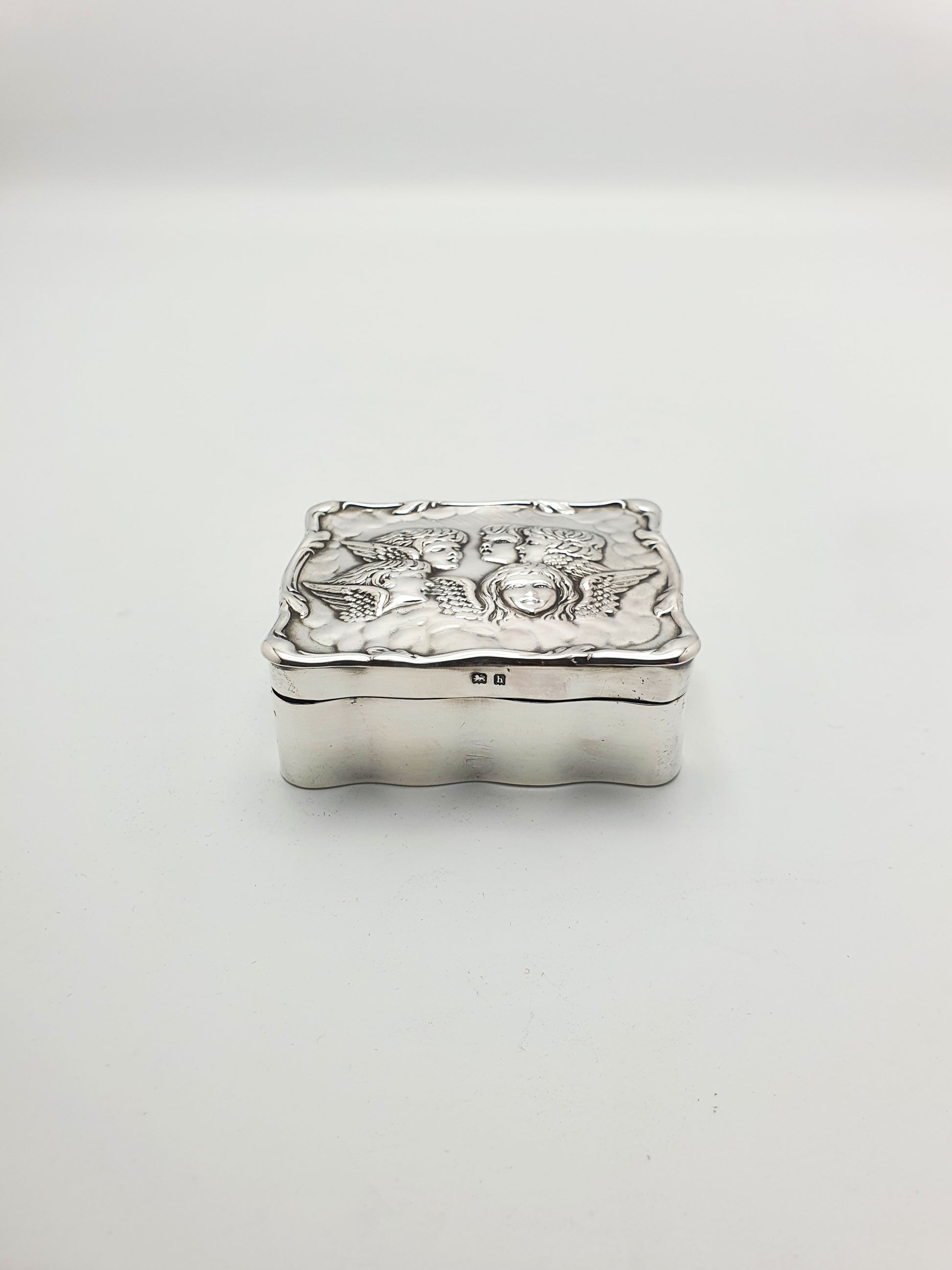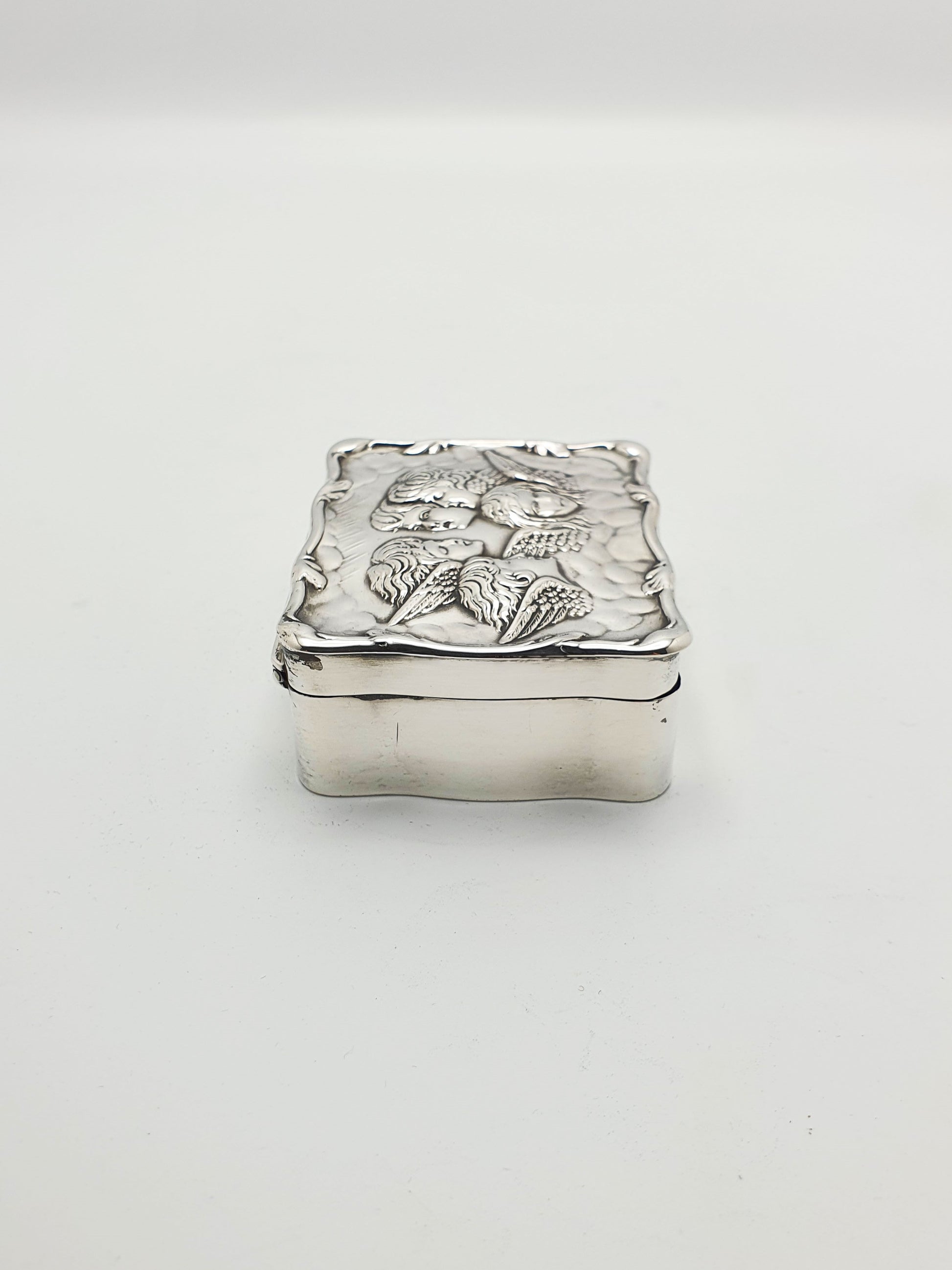 Gorgeous Antique Edwardian Silver Cherub Trinket Box with Velvet Interior - 1907