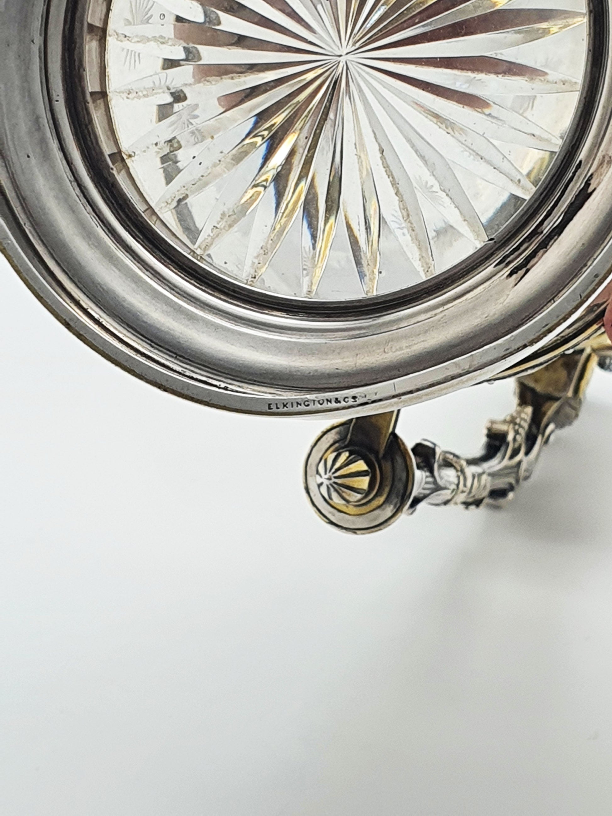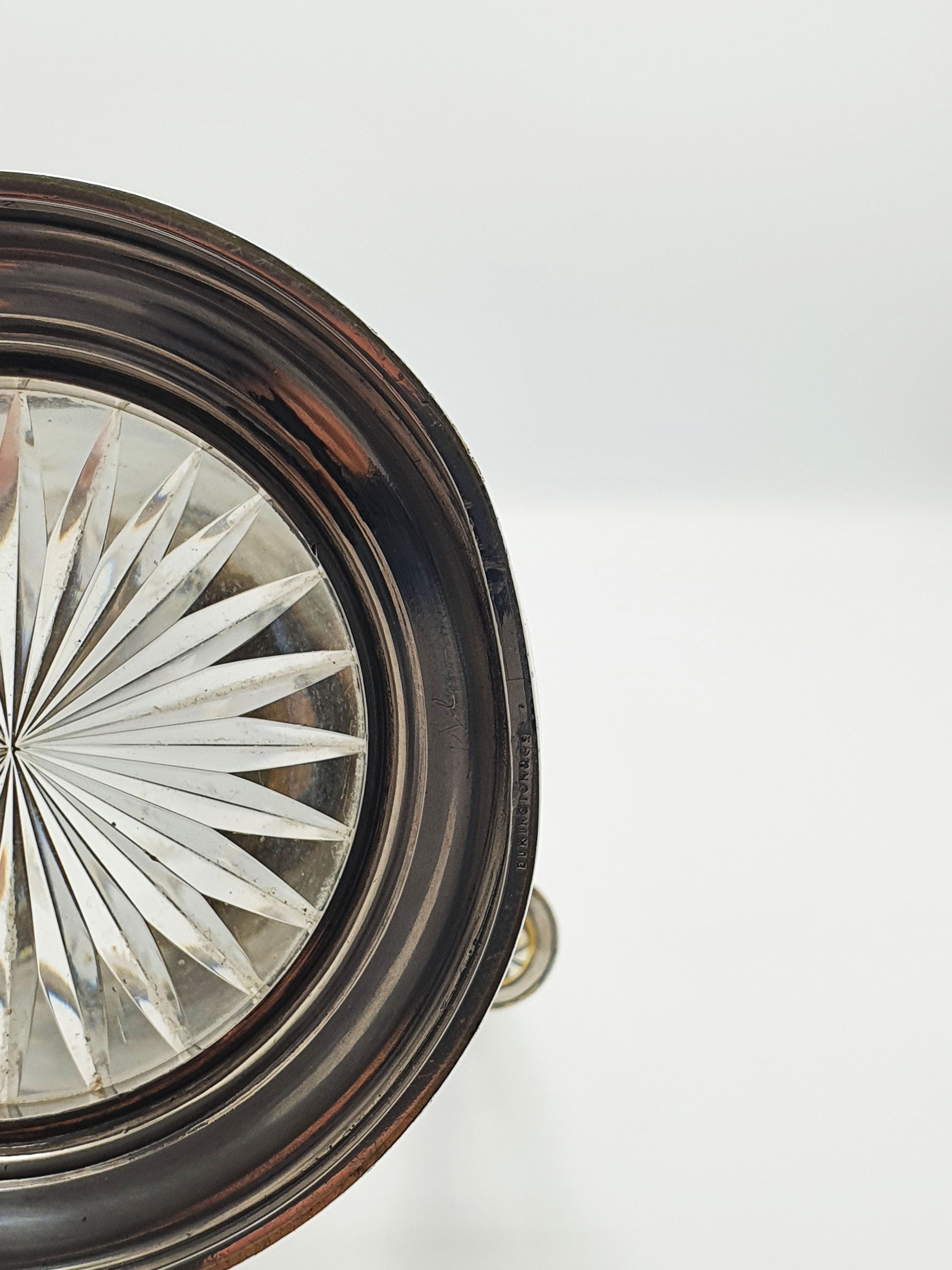 In good condition – Minor age-appropriate wear to the silver plate; glass is clear with no cracks or chips. Hinged lid opens smoothly; ideal for serving wine, displaying floral arrangements, or curating in a cabinet of fine antique glass. The rim of the base has a slight dent – as shown in the photographs for accuracy.