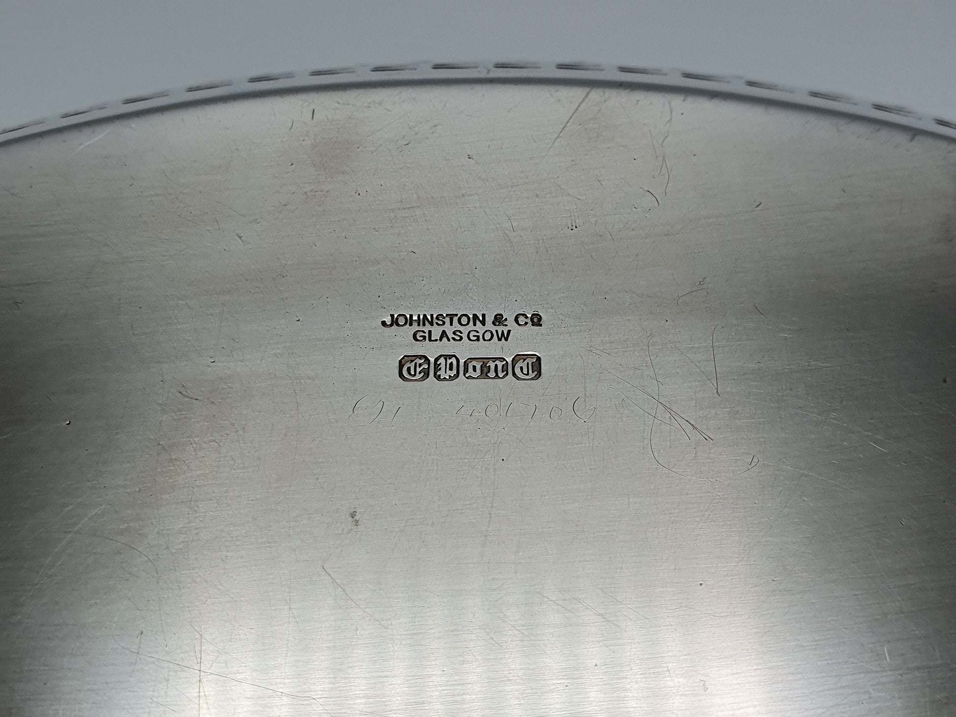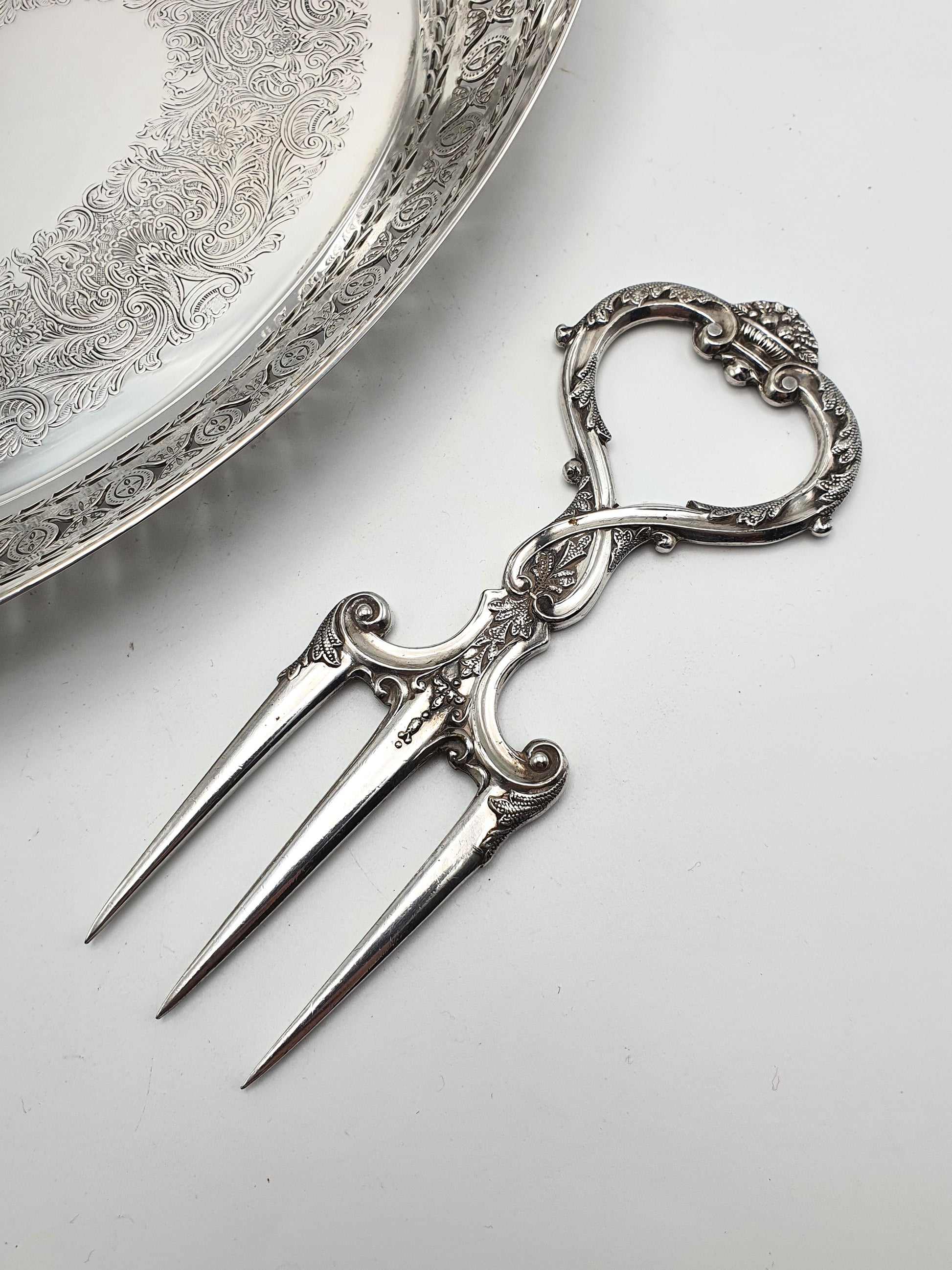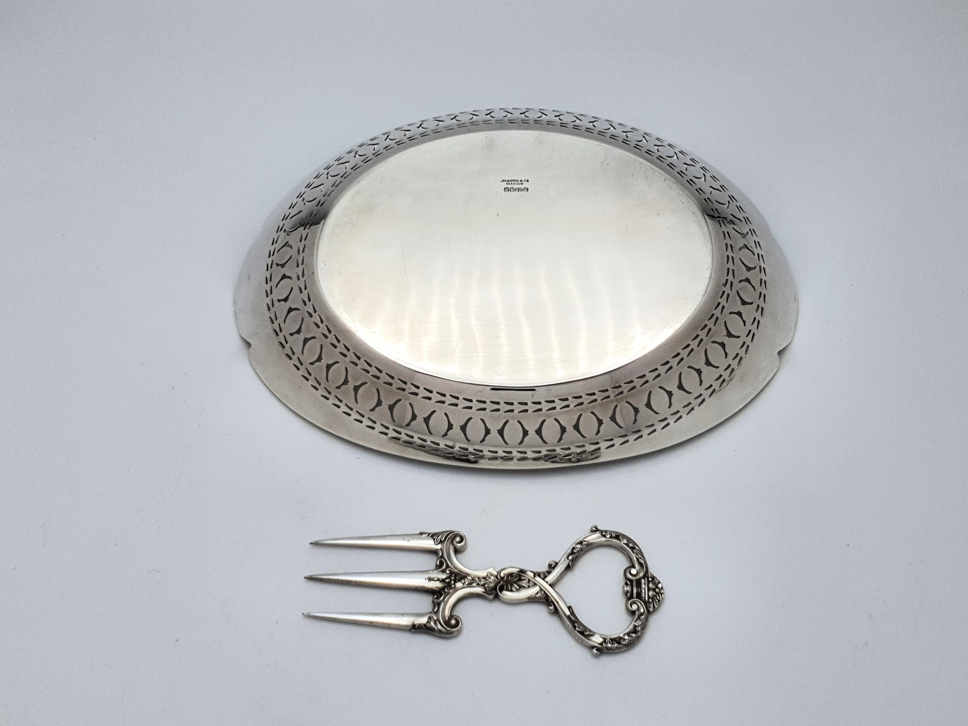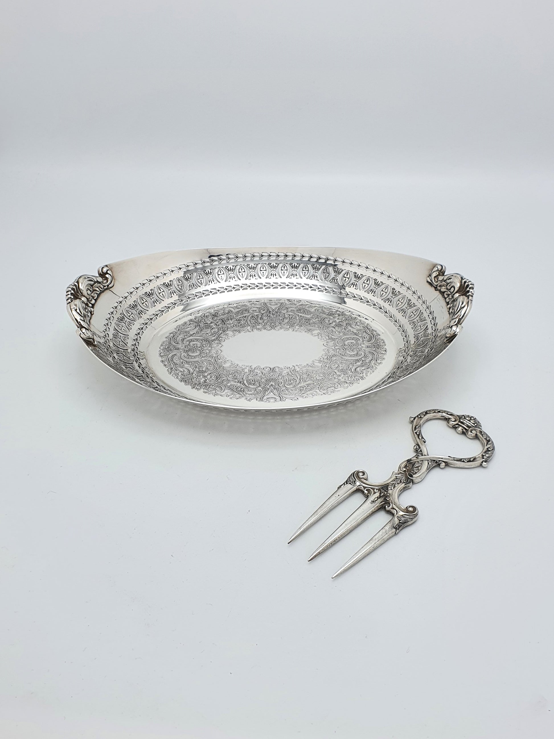 A Gorgeous Scottish Silver-Plated Breadbasket with lovely embossed and pierced decoration and comes with a decorative bread fork. Made by Johnston & Co Glasgow Scotland - circa 1930.