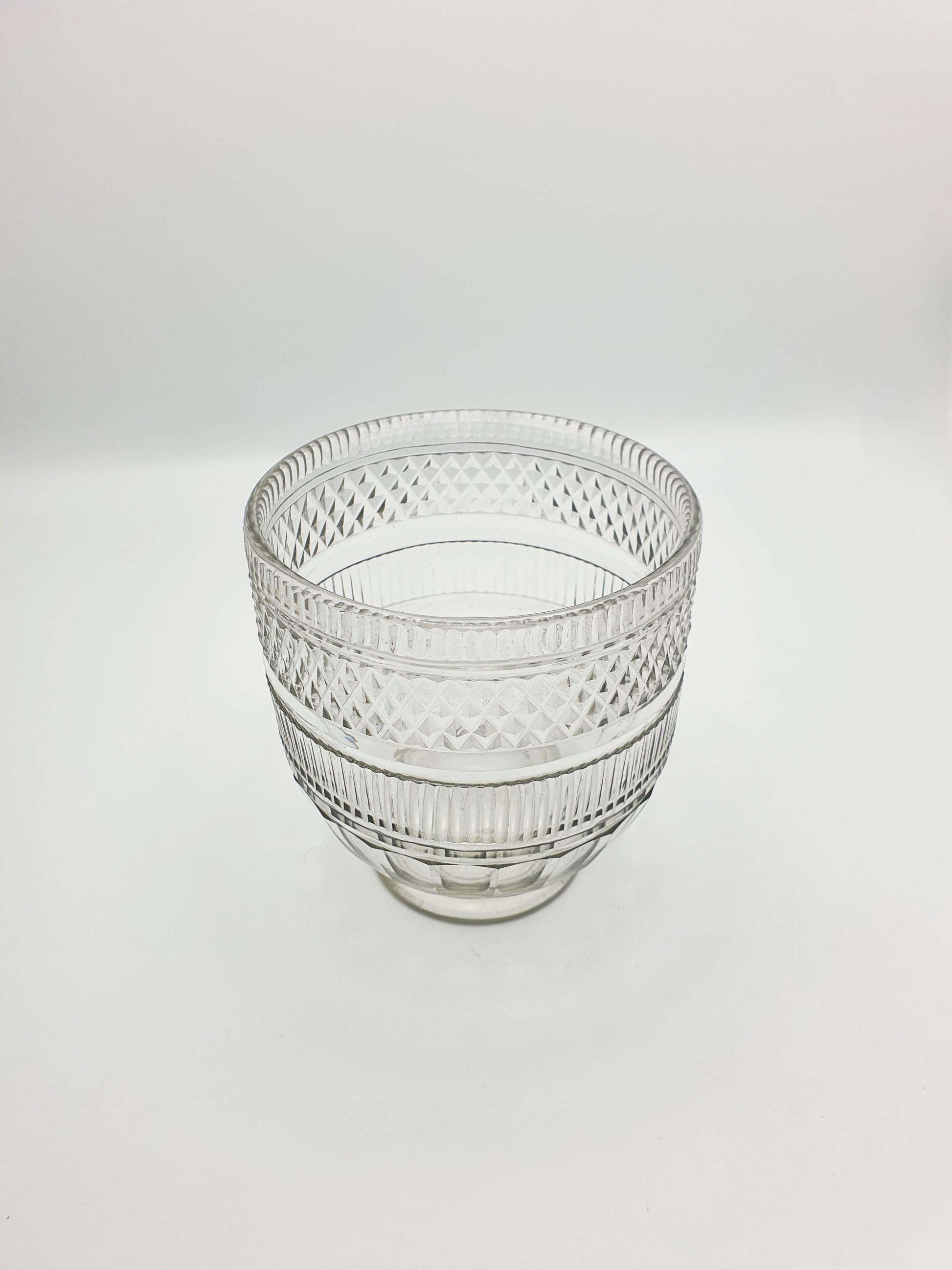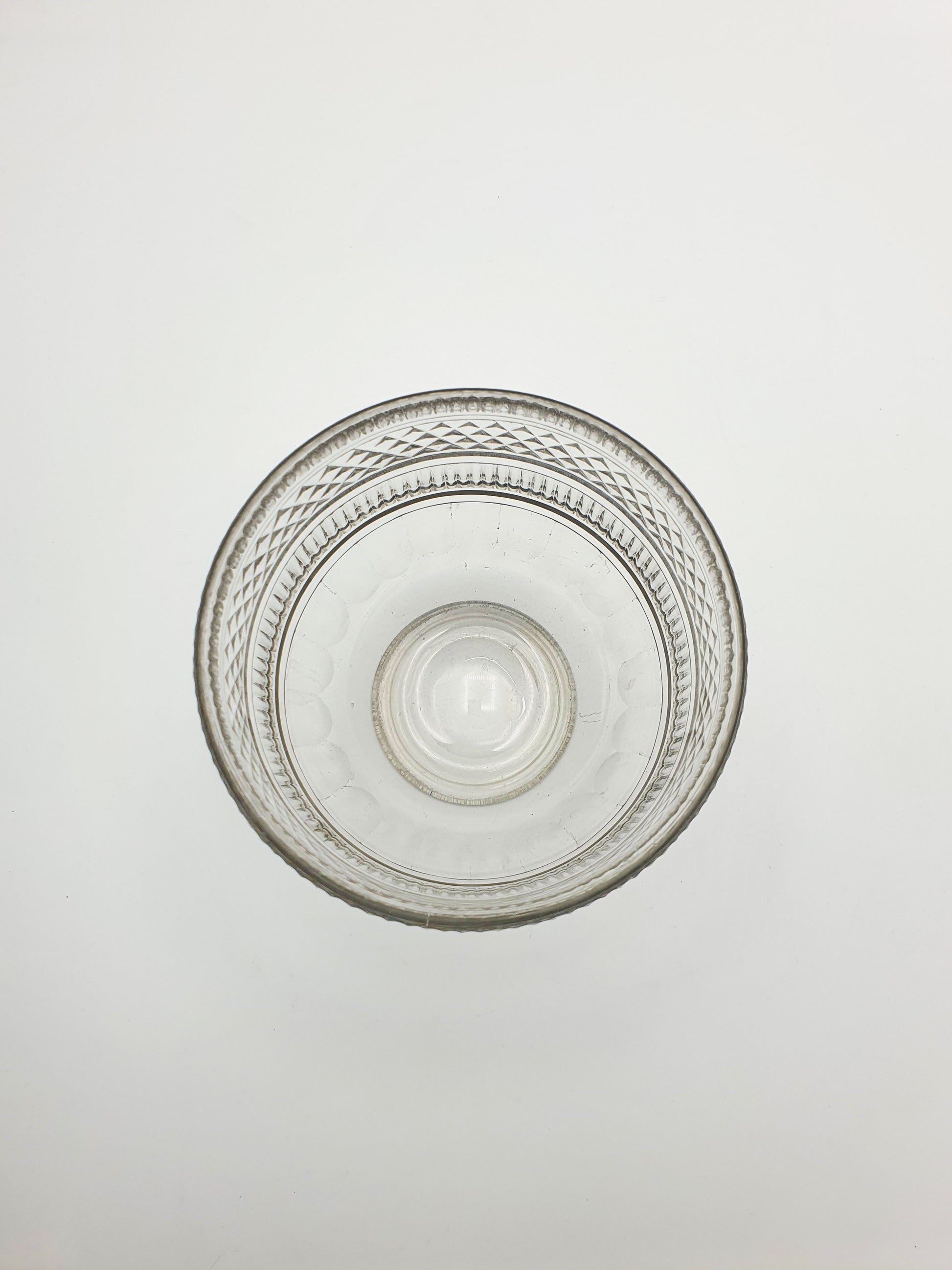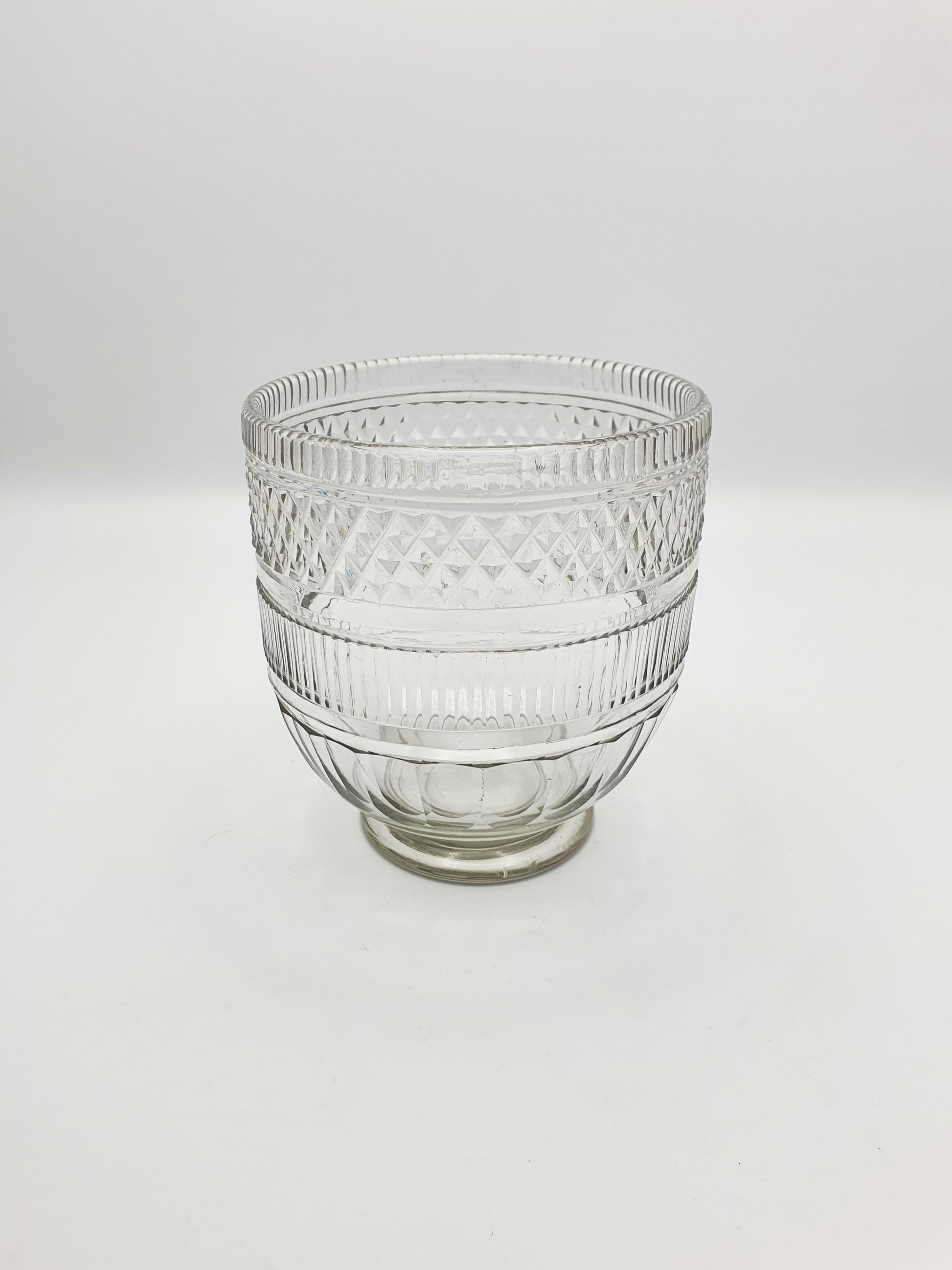 An Unusually Large Antique Georgian Cut Glass Tea Mixing Bowl richly decorated with alternating diamond cutting and fluted bands, creating a striking interplay of light and texture. Bowls of this type were used in tea preparation, when loose-leaf tea was blended at home before brewing – a luxury ritual of the Georgian household – circa 1800.