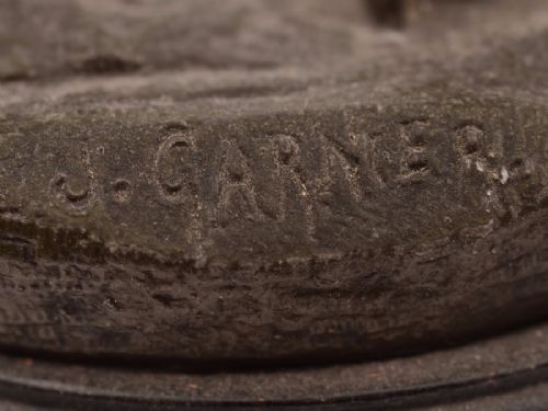 A wonderful pair of large French spelter figures of two cavaliers with green pattern highlighted in gold signed by J Garnier circa 1890. FREE worldwide delivery. Measurements: Height: 16 (approx 40cm) Diameter across base: 6 1/4 (approx 15.5cm) Total combined weight: 6740g In good condition