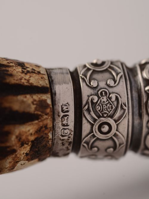 A nice large English Victorian silver handled antler handled magnifying glass. The glass is modern but the handle is antique. Hallmarked Sheffield 1889. FREE worldwide delivery. Measurements: Height: 3/4 (approx 1.75cm) Length: 13 1/2 (approx 33.75cm) Diameter of glass: 6 (approx 15cm) Weight: 818g In good condition.